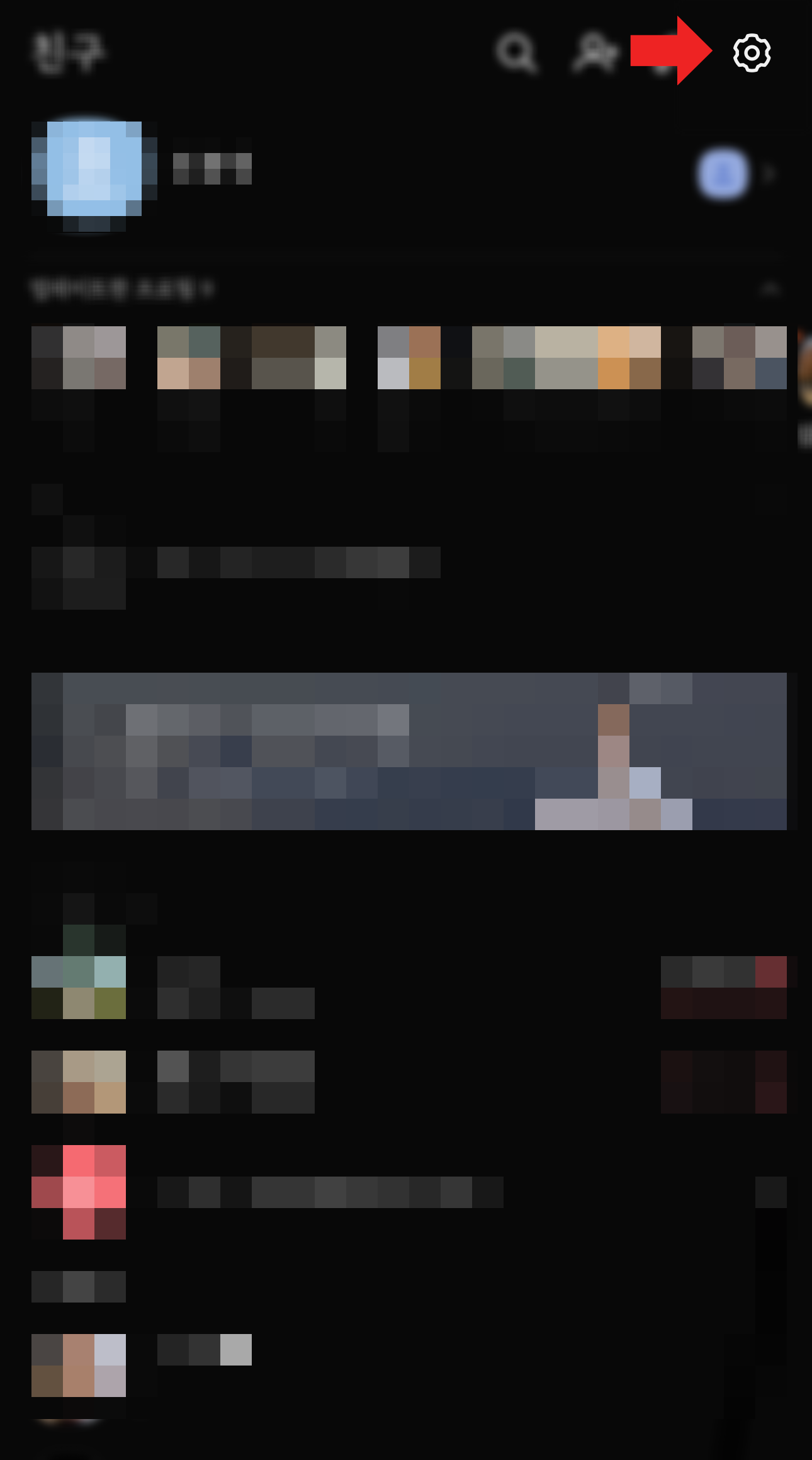 1) 카카오톡 친구 화면 접속 -> 우측상단 톱니바퀴 접속 (전체설정) -> 카카오계정 메뉴 접속