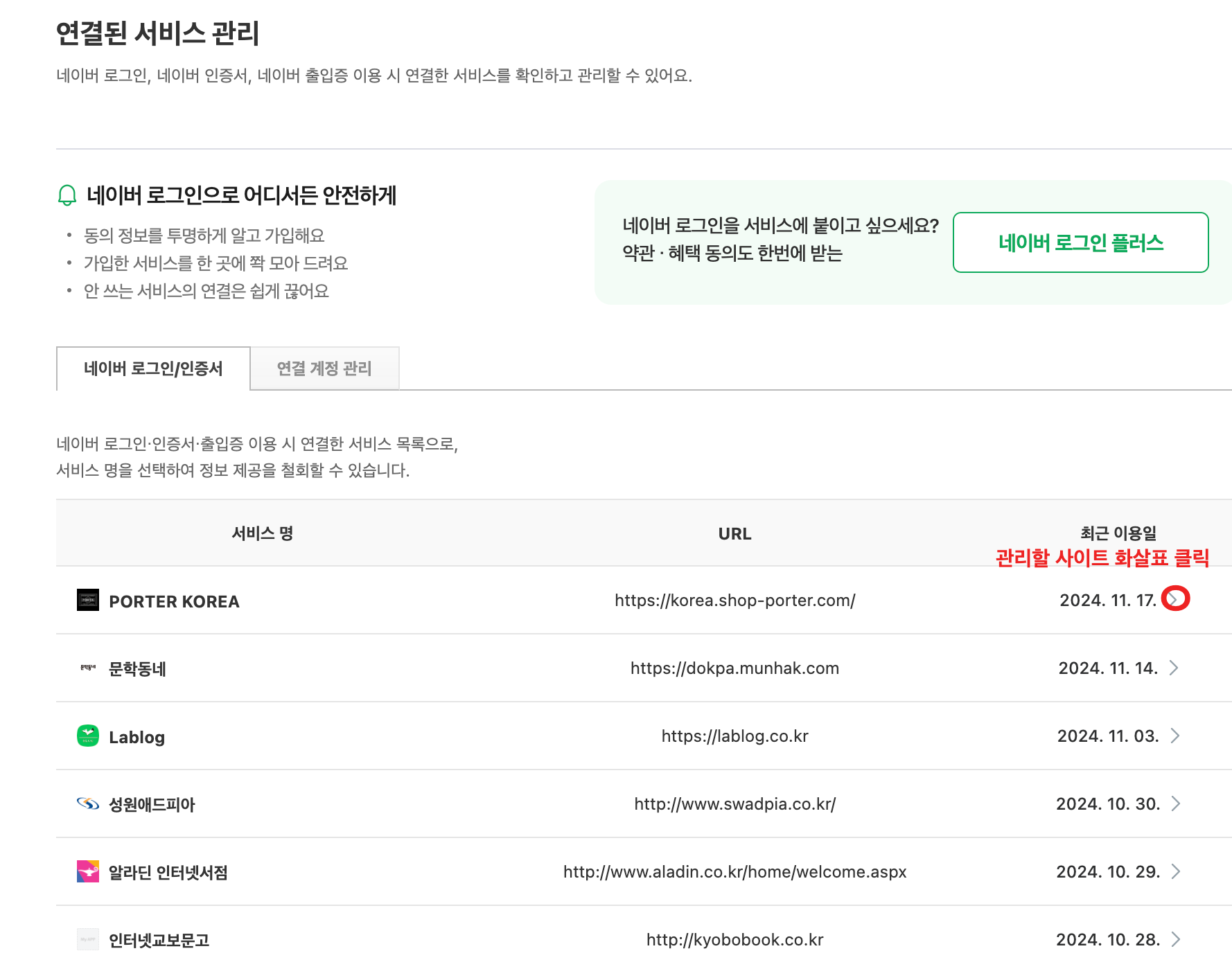 3) 해당 메뉴에서 네이버 로그인/인증서 또는 연결 계정 관리를 선택.