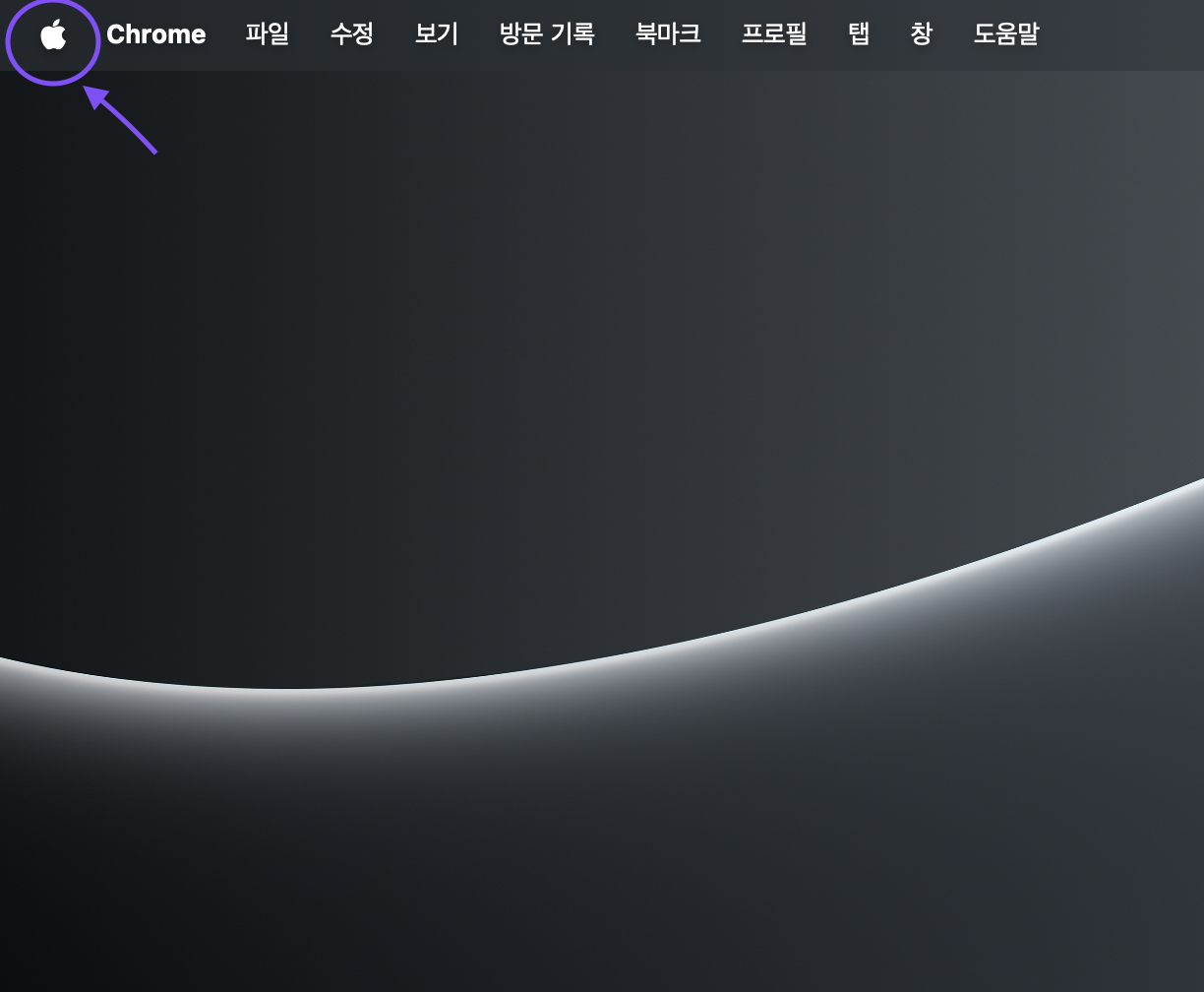 1) 맥북의 기본! 좌측상단의 사과모양 클릭 -> 시스템설정을 클릭