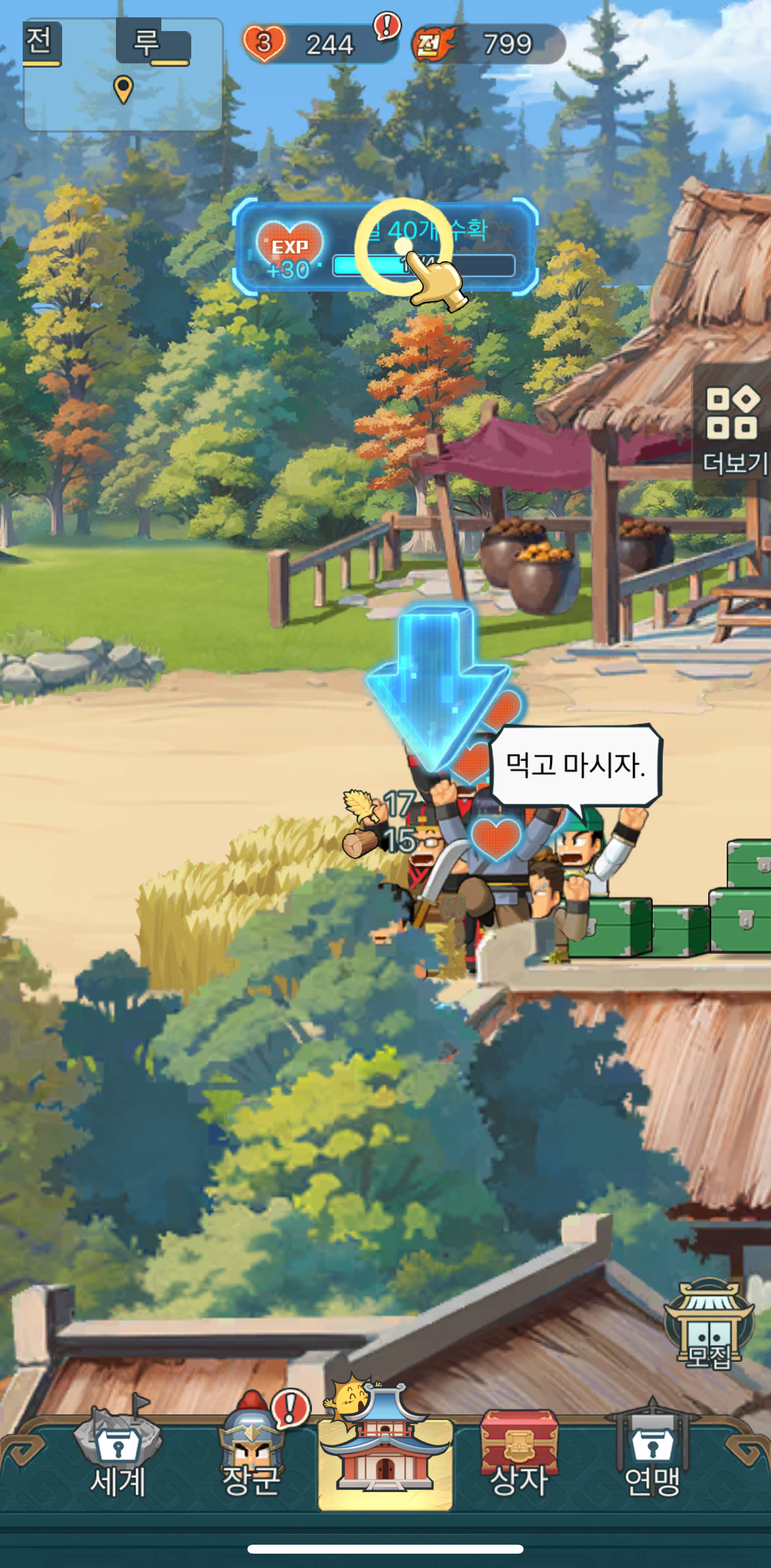 일단 초반에 1시간 정도 플레이 해봤는데, 바쁘다 바빠 나무도 하고 밀도 베고, 만두도 만들고 합판도 제작하고, 상자도 까고 장군도 배치하고 뽑기도 해야 하고, 장수들 레벨업도 해야 하는데 아직 연맹이나 세계 항목은 열리지도 않았는데 나이가 들어서 그런가 벌써 기가 빨리는 느낌이다..ㅋㅋ