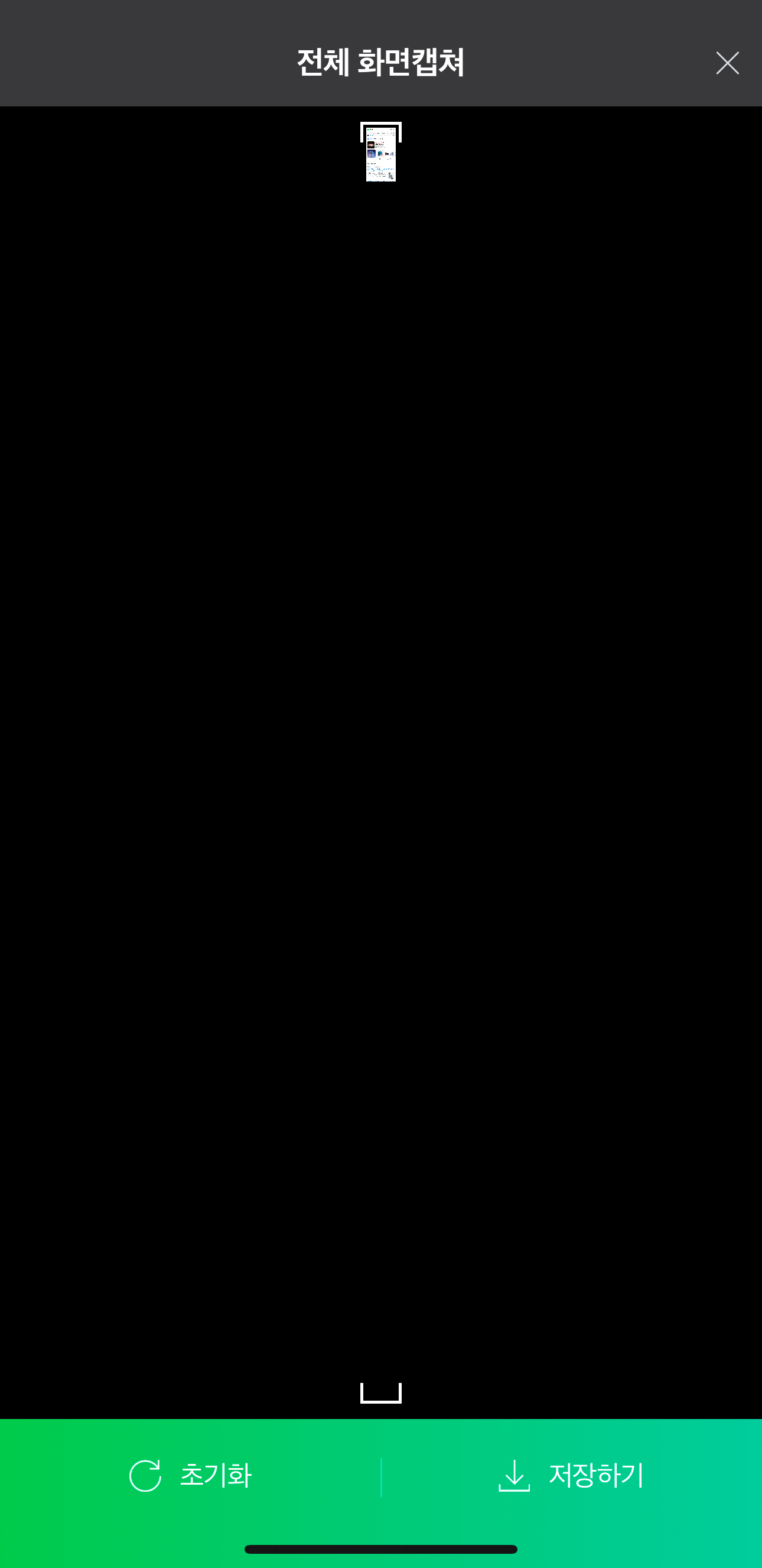 2) 터치 후 사진편집기능에서 우측 상단 '전체 페이지' 선택 → 필요한 부분을 선택하거나 저장하면 스크롤 캡쳐 완료