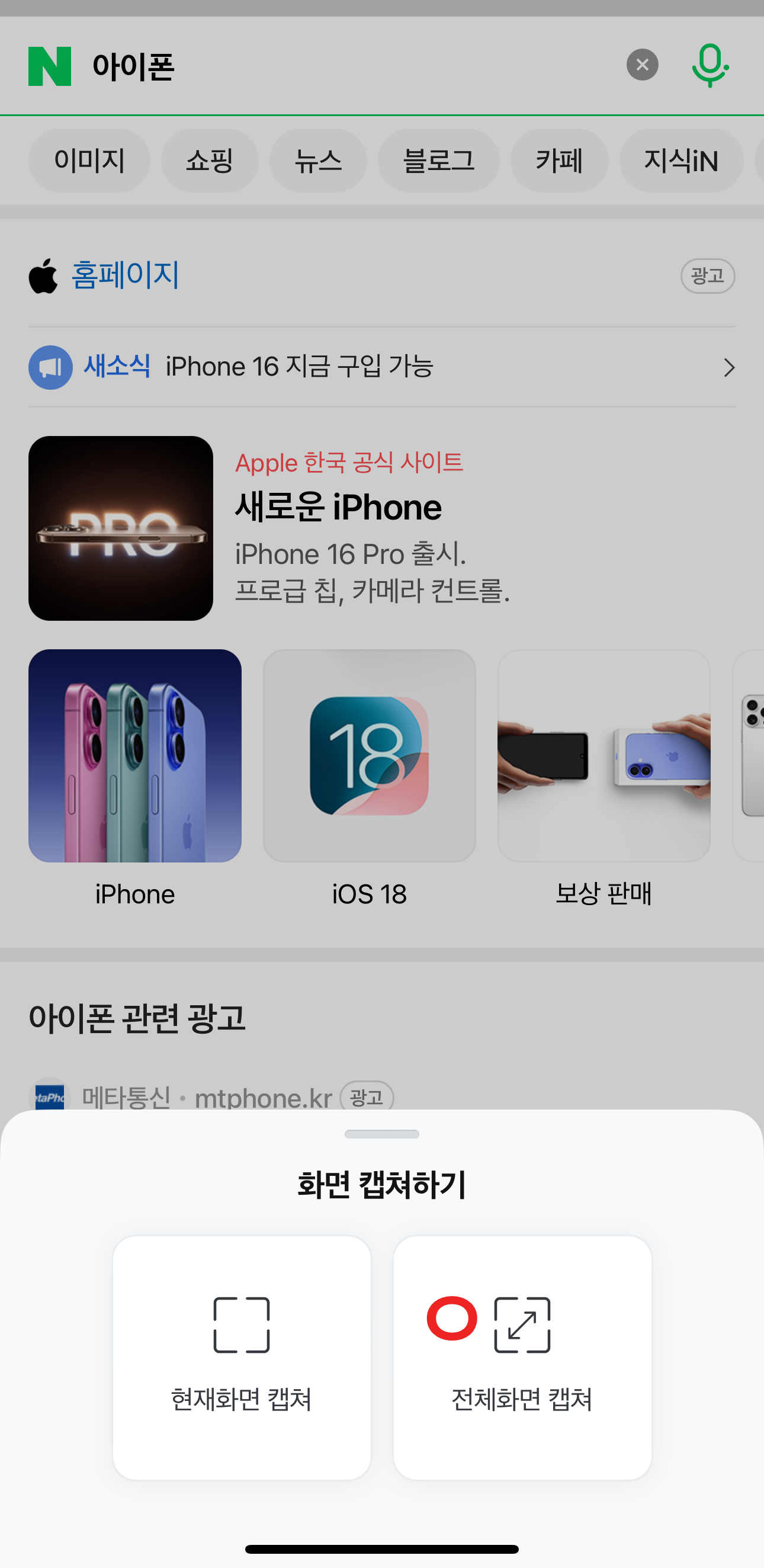 아이폰 전체화면 스크롤 캡쳐(스크린샷, 캡처) 방법