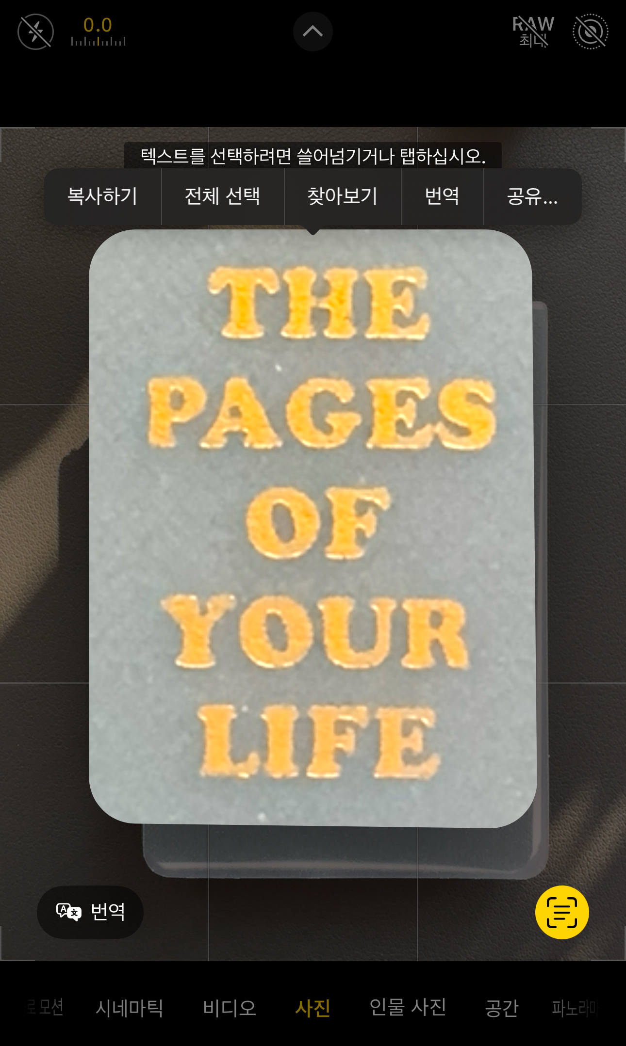 4. 아이폰 사진 촬영 번역 기능 (텍스트 복사, 검색 등)