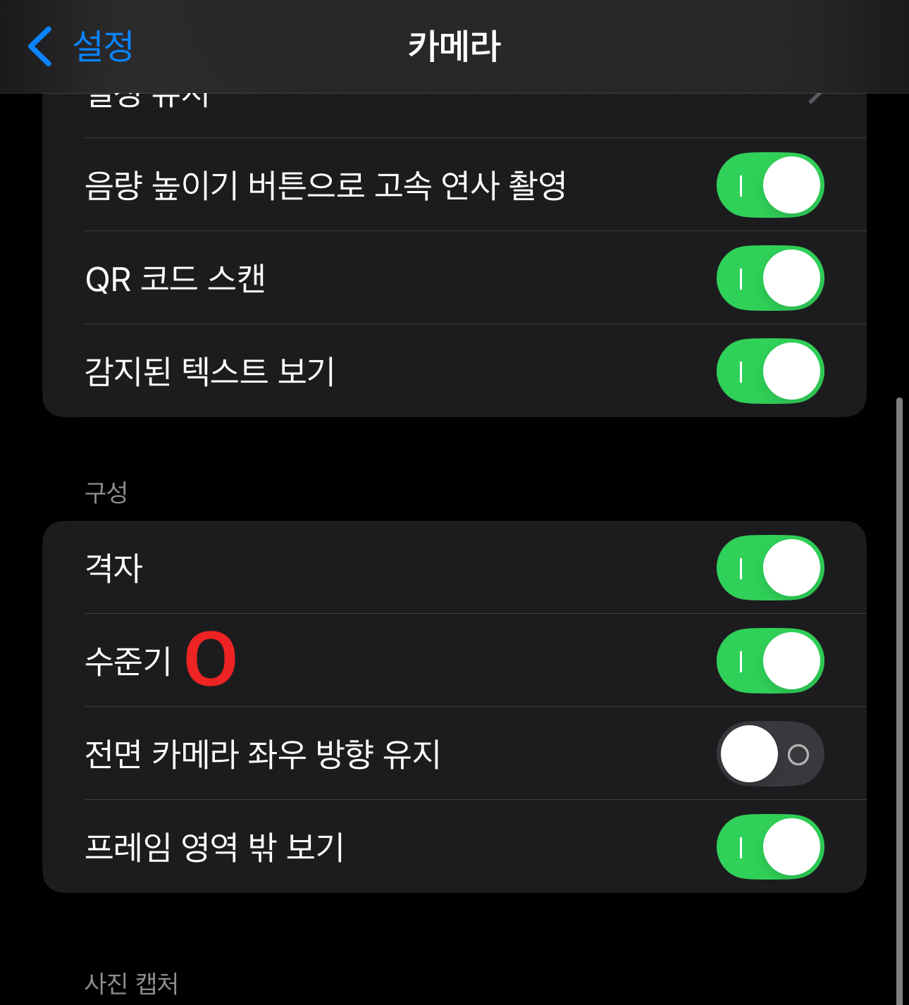 2. 아이폰 사진 촬영 수준기 모드 설정