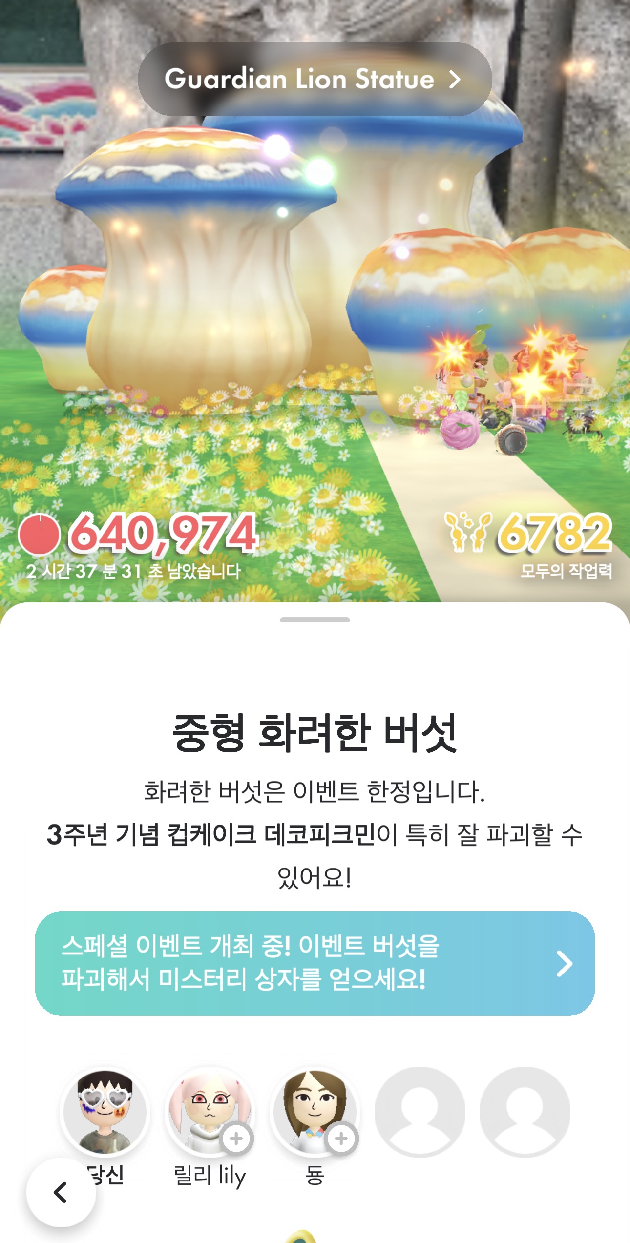 <피크민 블룸>을 지인 소개로 처음 시작하면서 그냥 운동삼아 겸사겸사 플레이했는데, 어느새 이렇게 인기가 많아져서 많은 사람들이 즐기는 게임이 되어버렸다니 왠지 모르게 감회가 새롭다. 원래 어느 정도하고 이제 그만해야지 했는데, 나름 동네에서 고렙인 고인 물의 향기를 풍기고 있으니 재밌기도 하다.