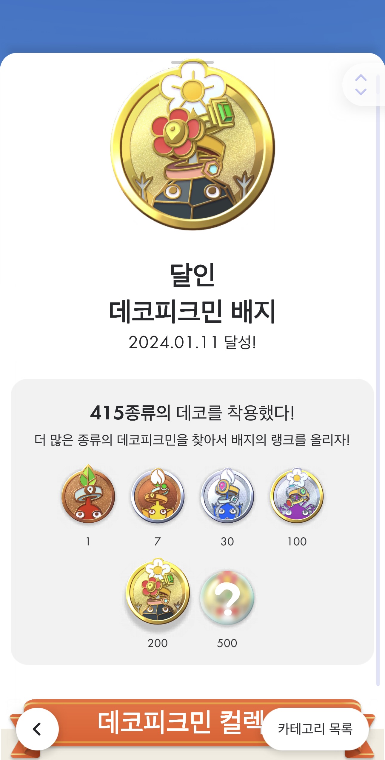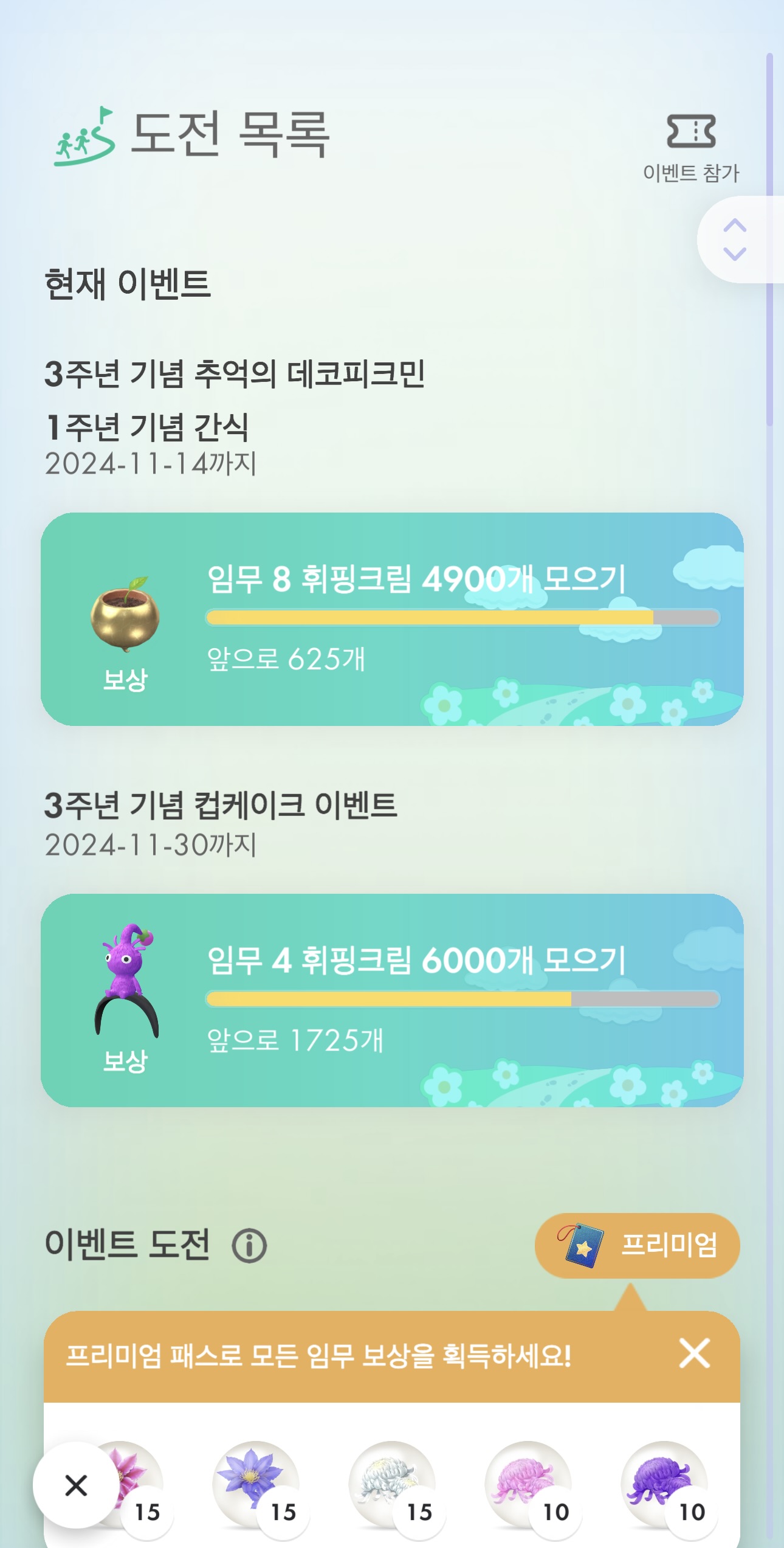 <피크민 블룸>을 지인 소개로 처음 시작하면서 그냥 운동삼아 겸사겸사 플레이했는데, 어느새 이렇게 인기가 많아져서 많은 사람들이 즐기는 게임이 되어버렸다니 왠지 모르게 감회가 새롭다. 원래 어느 정도하고 이제 그만해야지 했는데, 나름 동네에서 고렙인 고인 물의 향기를 풍기고 있으니 재밌기도 하다.
