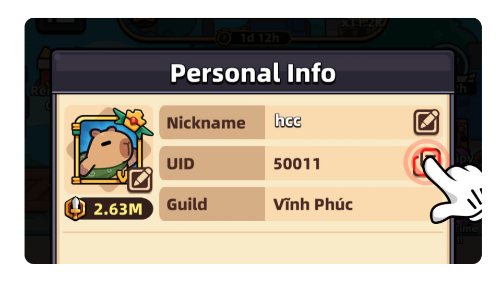 초보자들이 제일 헷갈리는 것이 게임아이디인데, 절대 닉네임을 입력하면 안 되고, 자신만의 고유 코드인 UID를 입력해야 한다는 것이다. 확인방법은 게임에 접속해 좌측상단 캐릭터 얼굴을 터치하면 캐릭터 정보가 나오는데 거기에서 닉네임 아래 UID 숫자에서 우측 버튼을 누르면 복사할 수 있다. 그것을 리딤코드 페이지에 붙여 넣거나 입력하면 된다.