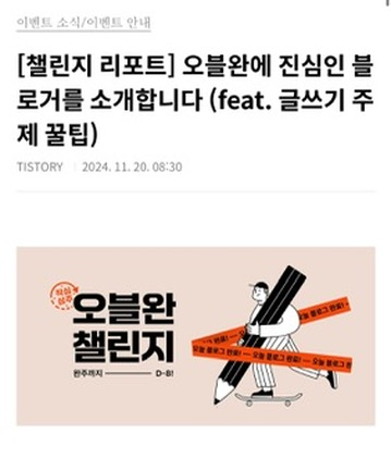 [챌린지 리포트] 오블완에 진심인 블로거를 소개합니다 (feat. 글쓰기 주제 꿀팁)