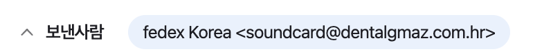 근데 왠지 모를 싸늘함에 다시 한번 메일 주소를 찬찬히 살펴봤다. 분명 페덱스 코리아인데, 메일주소 자체가 조잡하기 그지없었다. 보내려면 최소한 페덱스 메일을 쓰는 성의라고 있어야 하는 거 아닌가? 뭐 대충 비슷하게라도 해야 하는데.. 찝찝한 마음에 바로 검색을 해봤다.
