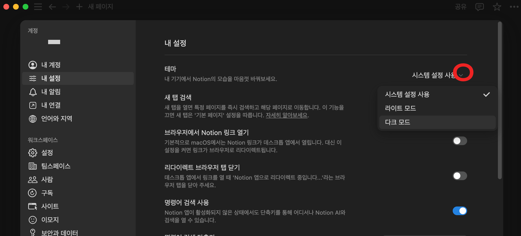 *시스템 설정 사용 시, 자신이 사용 중인 PC나 스마트폰의 설정에 맞춰 라이트나 다크 모드로 변경된다.