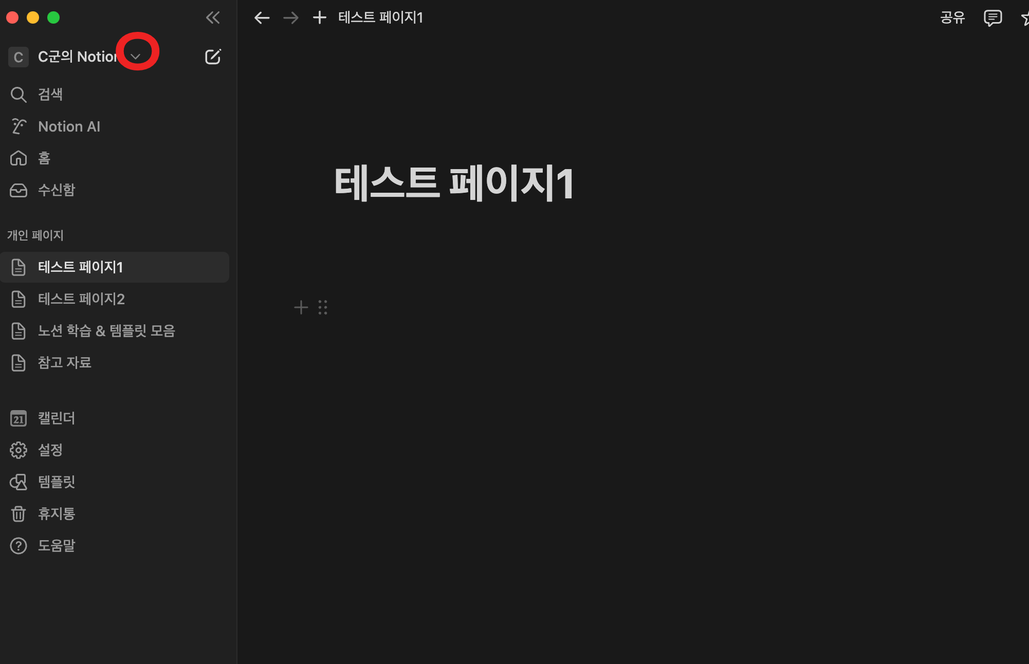 1) 사이드 바에서 워크스페이스 이름옆 화살표 > 멤버초대