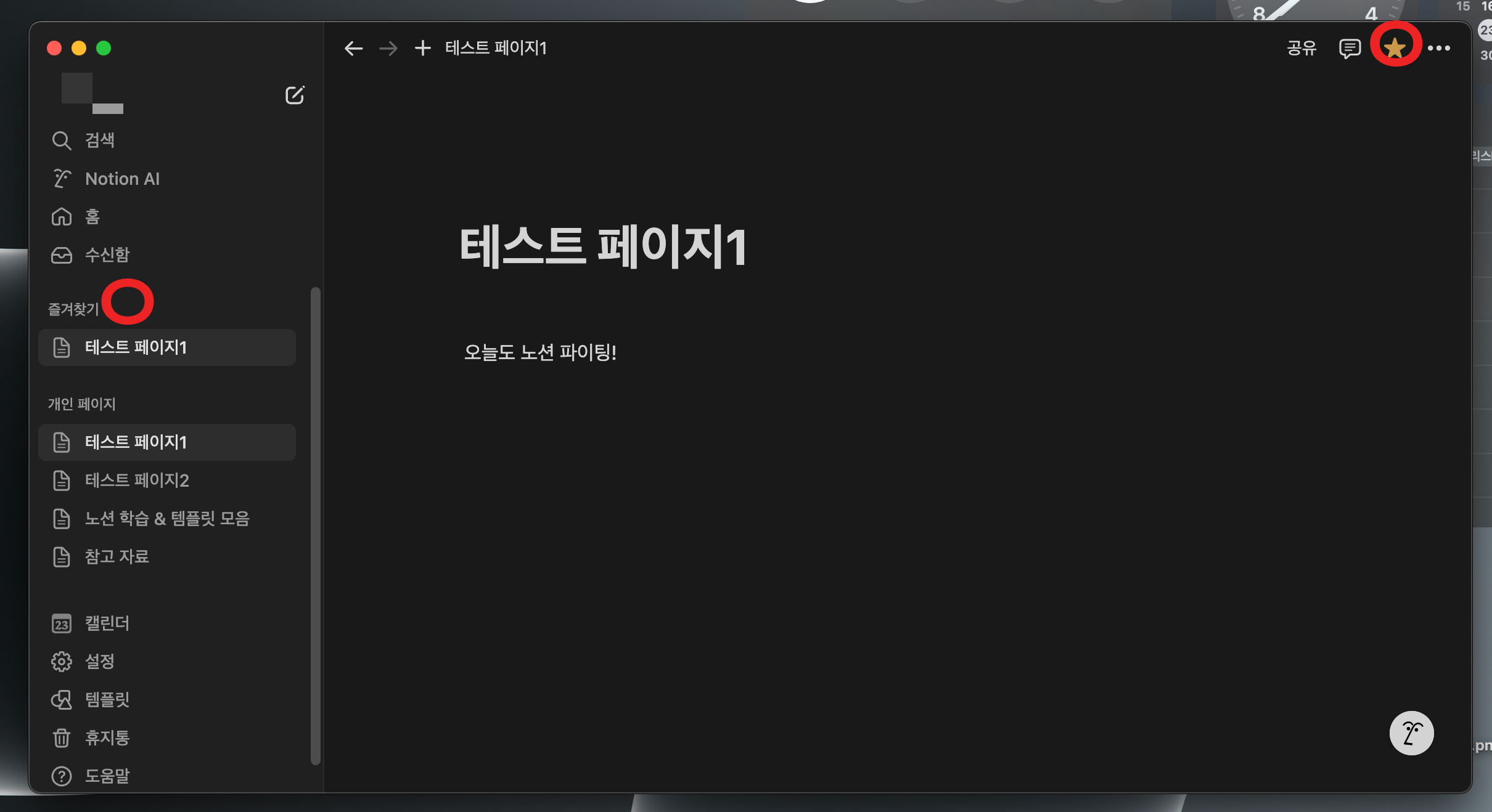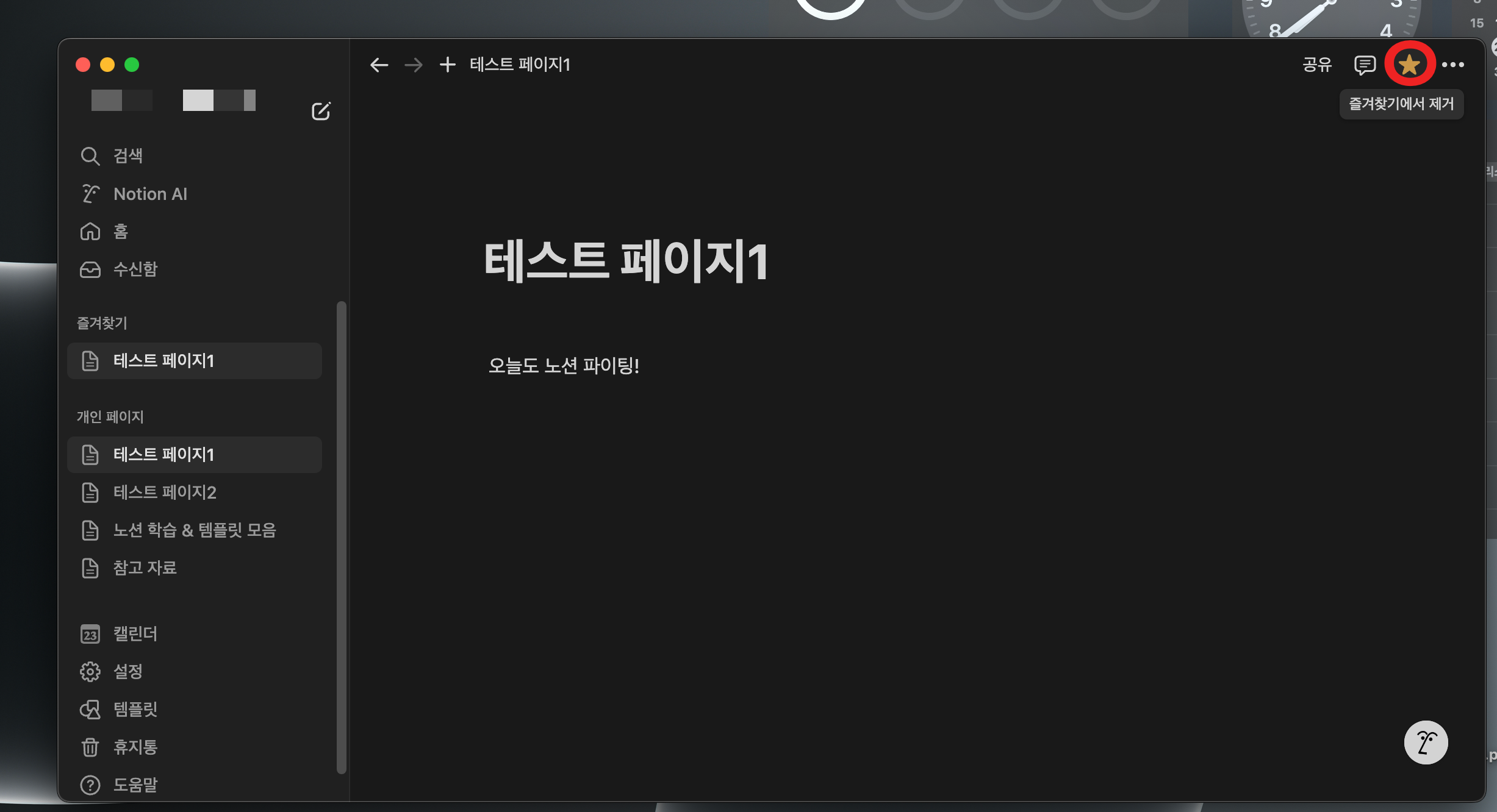 노션 페이지 즐겨찾기 방법