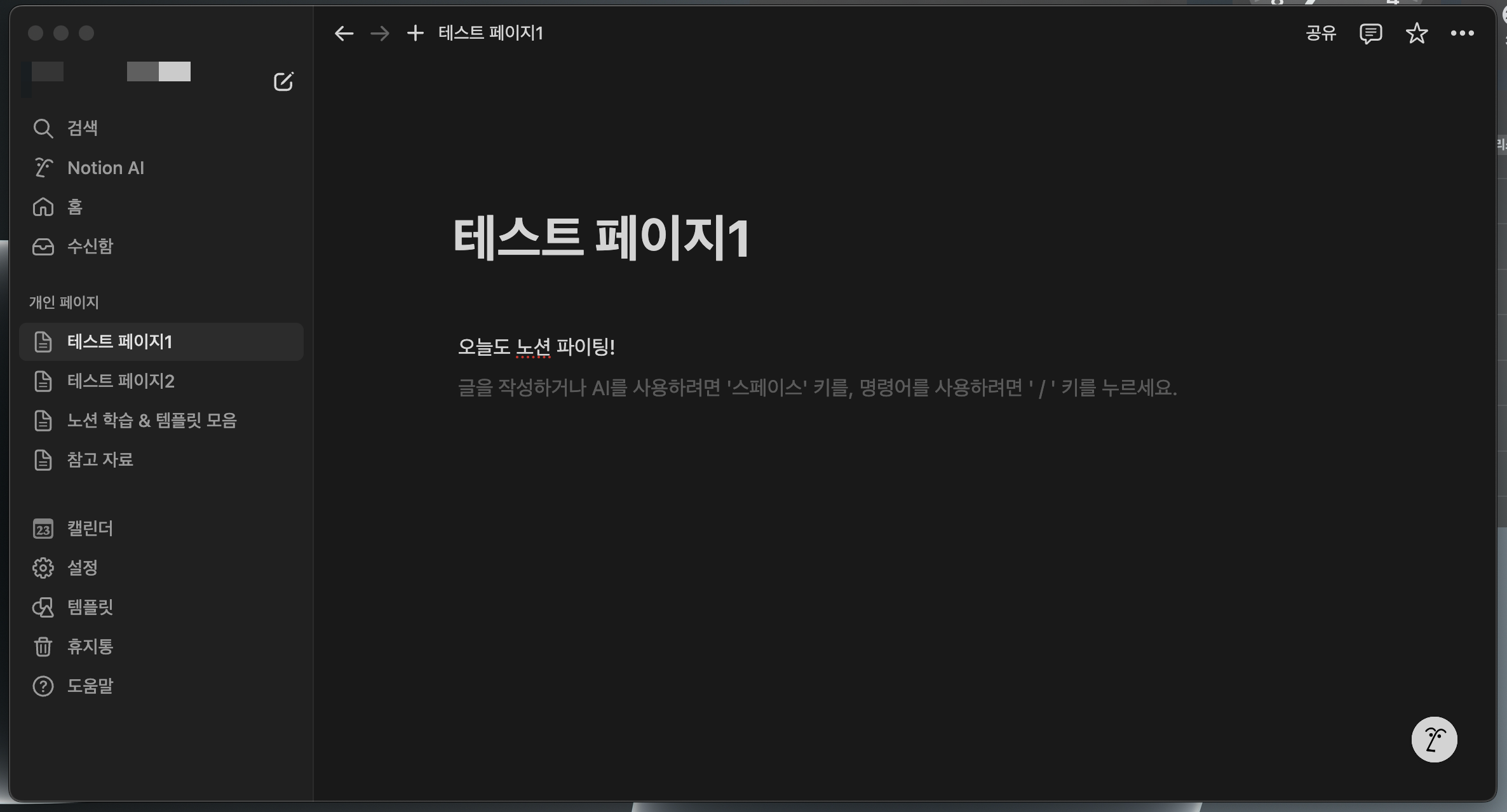노션의 기본 페이지 관리