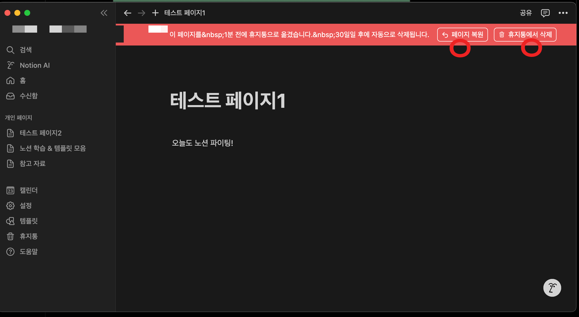 노션 페이지 삭제 및 복원 방법