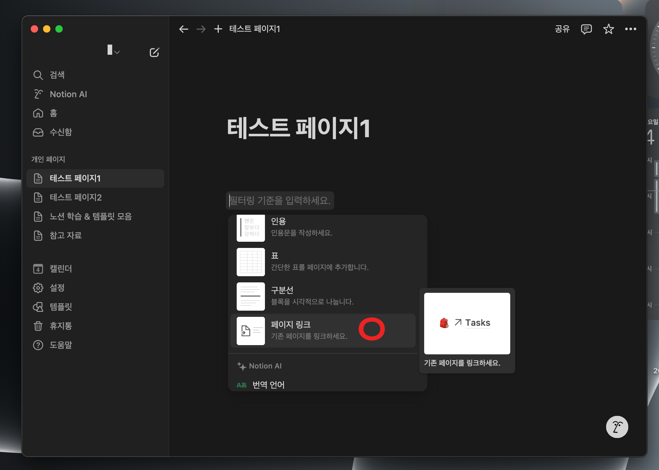 노션 내 페이지 즐겨찾기 (바로가기, 페이지 링크)